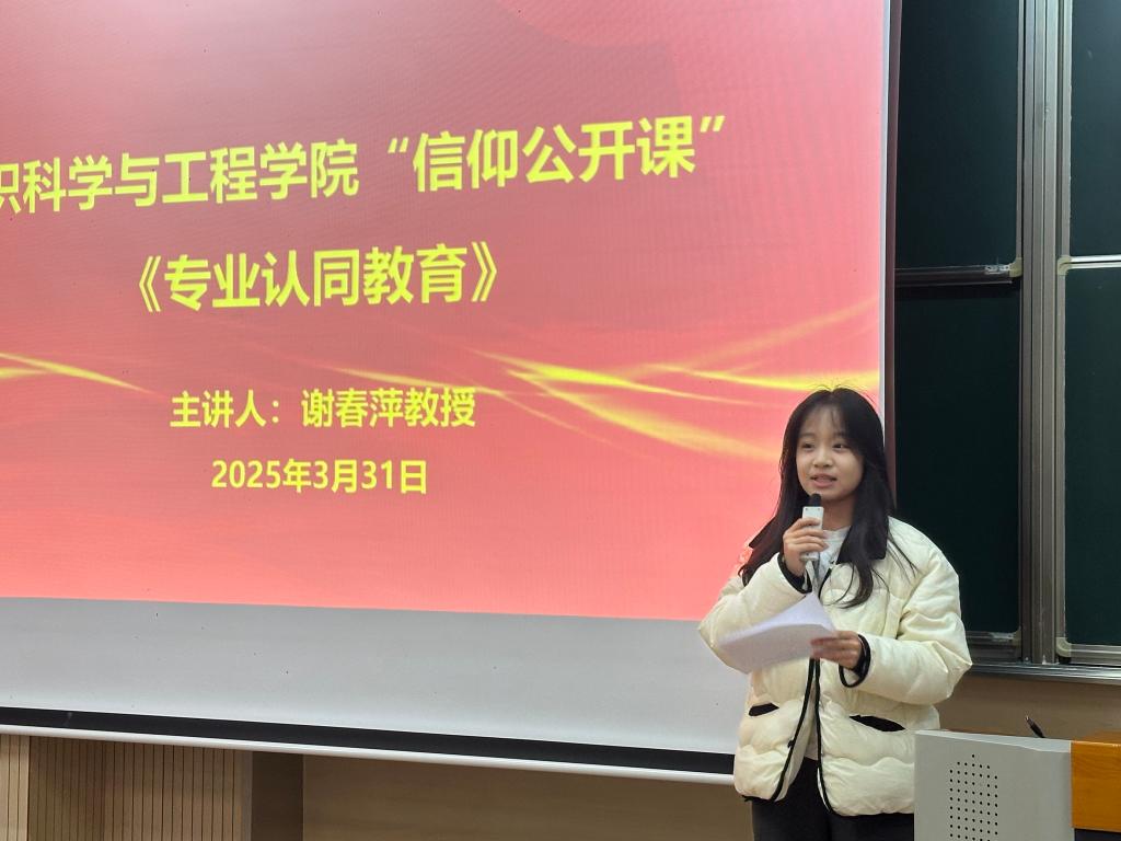 3月31日晚,williamhill在第一教学楼1B103举办“专业认同教育”信仰公开课。williamhill威廉希尔特邀报告员、公司关工委委员谢春萍教授担任主讲嘉宾,公司辅导员孙慧及2024级全体本科生参与本次活动。活动由团委通讯社李佳雯主持。