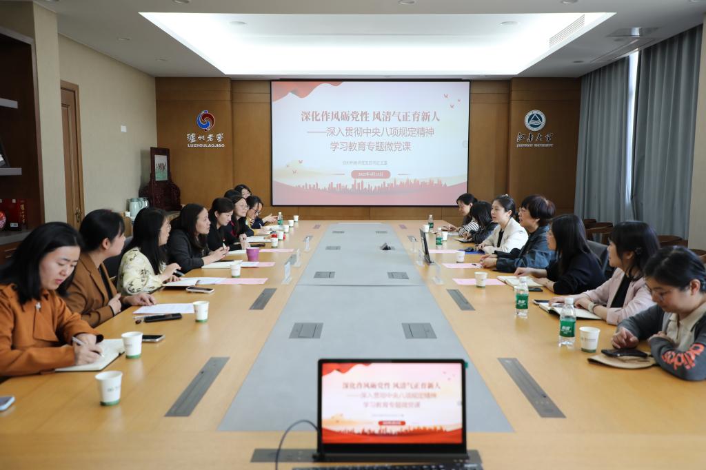 接着,两院教工党支部书记开展交流研学。校第三批“双带头人”教师党支部书记工作室负责人、纺织所教师党支部书记王蕾作《深化作风砺党性 风清气正育新人》为题作深入贯彻中央八项规定精神学习教育专题微党课,着重讲解了高校教师党员层面学习教育的具体要求和典型案例。生物工程公司样板支部书记、双带头人教师党支部书记工作室负责人徐美娟作支部建设经验交流,生动展示了党支部通过深入实施“三大工程”,增强支部三大能力,奋力答好“教育强国,高校教师党支部何为”课题的主要成果。双方还就教工党支部建设思路、活动开展形式创新、党建和业务“一融双高”等方面进行了深入交流。