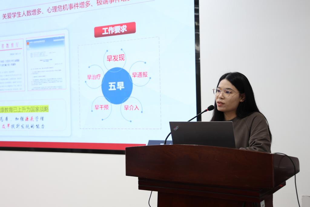 在教职工能力提升专题培训环节,产研院副科级干部薛华茂作横向科研工作交流,解析了在签订合同时需要关注的关键要素,介绍了横向科研项目的管理制度和政策导向,通过警示案例强调了在科技服务过程中应严格遵守法律法规,保障科研工作的健康有序发展。员工工作部心理健康教育中心专职教师、国家二级心理咨询师曾艳以《员工心理问题识别与早期干预》为题作指导,立足翔实的基础数据分析了当前心理工作的新挑战,对心理危机信号、识别途径、重要节点、心理问题预防举措等进行了普及和讲解,提高了参会教师对员工心理健康问题的认识,也为公司日常心理工作提供了具体的指导方案。