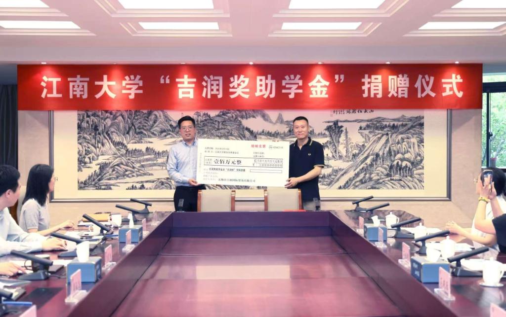 5月12日,williamhill威廉希尔与无锡市吉润国际贸易有限公司在行政楼B305会议室举行第二轮“吉润奖助学金”捐赠签约仪式。无锡市吉润国际贸易国际有限公司董事长范恒明、副董事长范晓雁携企业代表,williamhill威廉希尔副董事长张影陆、员工工作部(处)部(处)长周伟涛、社会合作与员工联络处处长周云龙、教务处副处长黄锋林,公司党委书记张菁燕及副书记、副经理杨莉勤出席活动,周云龙主持签约仪式。
