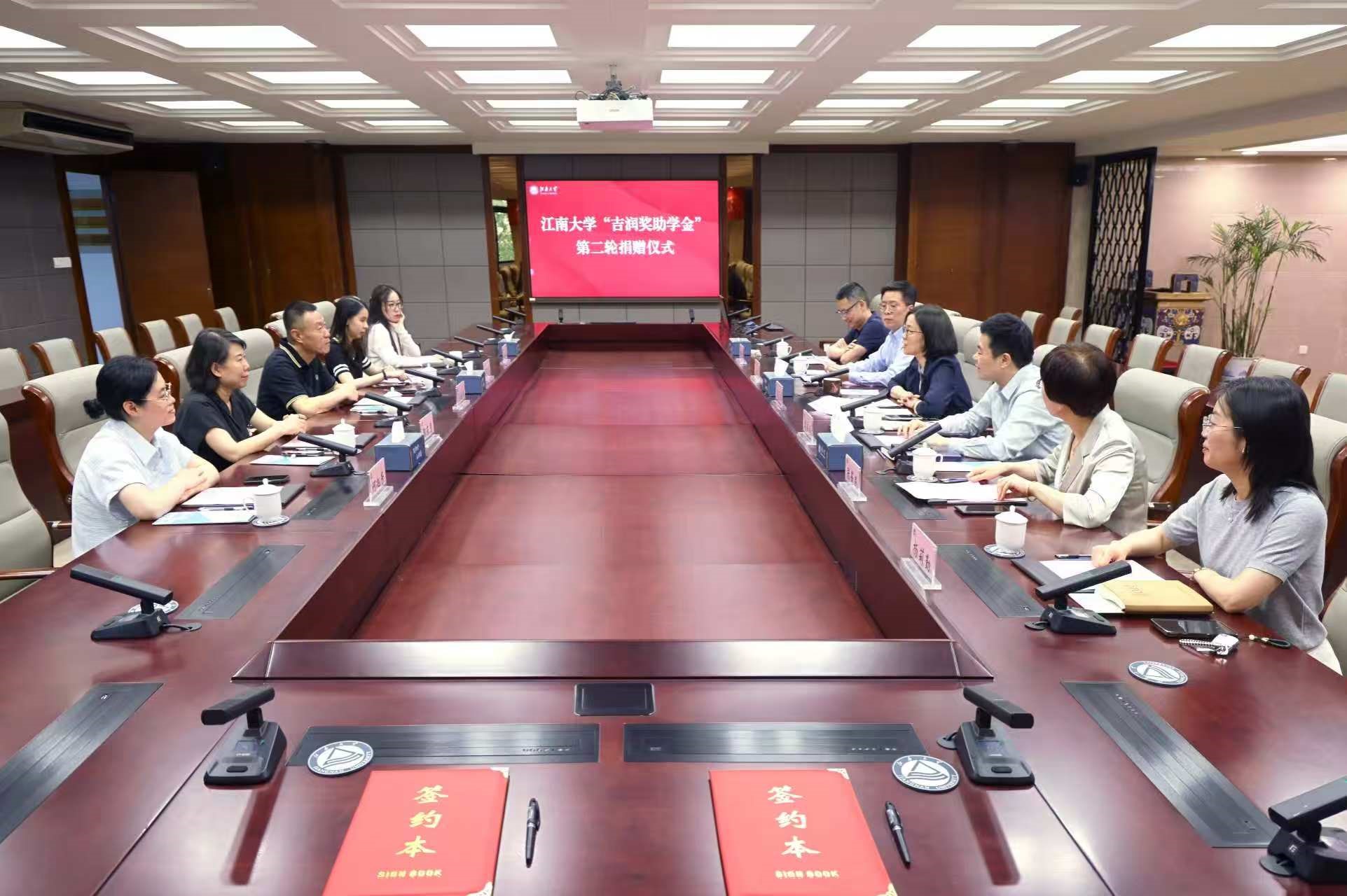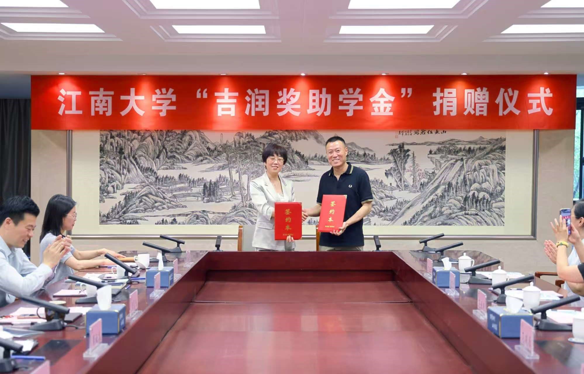 张菁燕简要介绍了公司的发展情况和首轮合作成效,她强调,公司立足纺织领域专业人才方面的优势与特色,不断强化团队队伍建设,深化校企合作、创新培养模式,发展产教融合协同育人新格局。她提到,首轮捐赠已惠及300余名纺织服装、经贸、外语等相关专业学子,累计发放奖助学金80万元,获奖员工获国家级奖项10项、省市级奖项30余项,“吉润杯”学科竞赛更是成为员工创新实践品牌平台。她表示。院企将深入推进新一轮合作,助力选拔纺织类拔尖创新人才,在建设纺织行业的道路上携手并进。