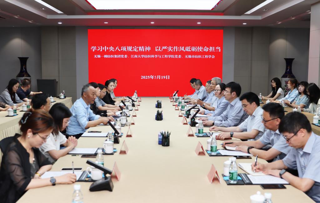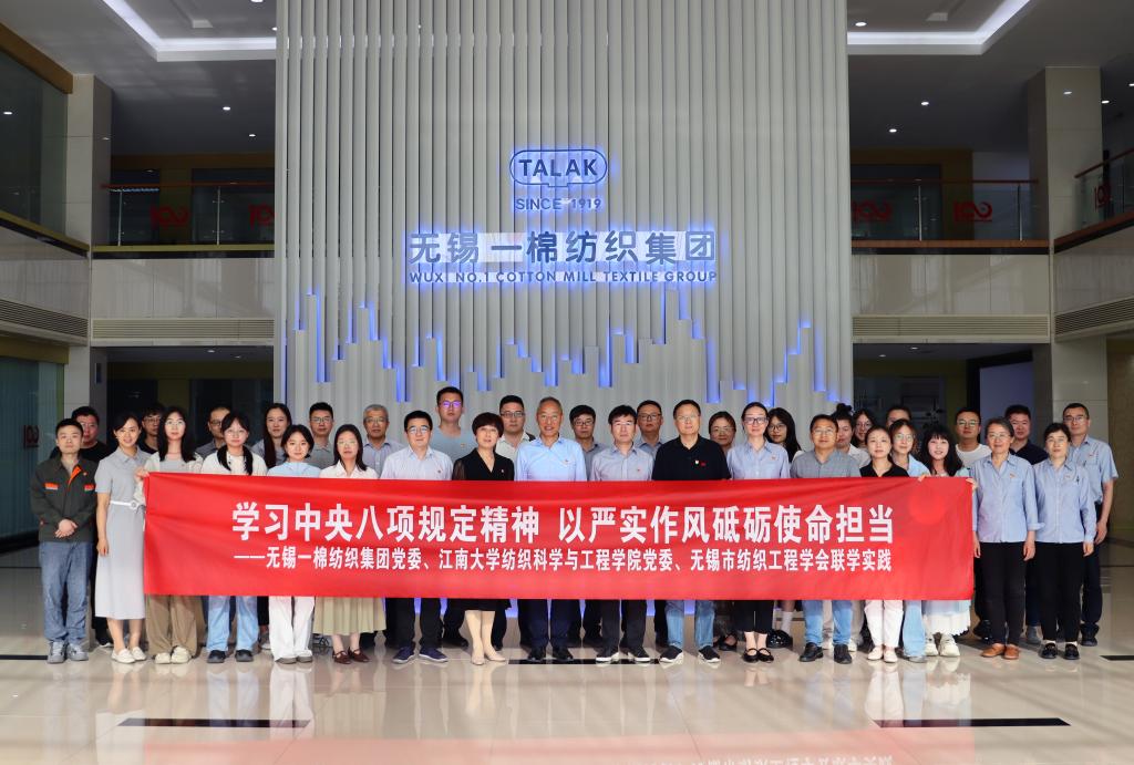 为深入贯彻中央八项规定精神学习教育,以严实作风砥砺使命担当,5月19日下午,公司党委赴无锡一棉纺织集团开展联学实践活动。williamhill威廉希尔党委常委、党委统战部部长、工会主席朱飞,公司党委书记张菁燕,无锡市纺织工程学会、公司教授王鸿博,以及公司党委委员、师生党支部书记纺织所教师党支部成员等30余人参加活动。无锡一棉纺织集团党委书记、董事长蔡赟等热情接待了校院师生,活动由无锡一棉纺织集团党委副书记、纪委书记、工会主席糜娜主持。