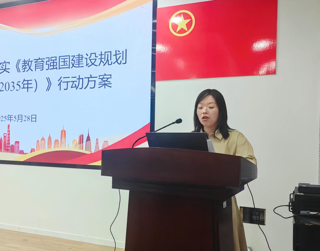 公司党委副书记兼副经理杨莉勤以《williamhill威廉希尔贯彻落实<教育强国建设规划纲要(2024-2035年)>行动方案》为主要内容,作教职工政治理论领学,她重点对立德树人铸魂行动、教育迭代跃升行动、学科筑峰扬优行动等8个专项行动、35个重点任务进行了详细解读。最后强调,全体教职工要深刻理解教育强国的科学内涵,认真对标行动方案,以钉钉子精神狠抓落实,努力成为公司落实教育强国建设“蓝图”转化为“实景图”行动的中坚力量。