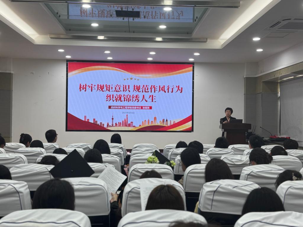 张菁燕以“树牢规矩意识 规范作风行为 织就锦绣人生”为主题,为毕业生党员讲授廉洁党课。她充分肯定了2025届毕业生党员队伍取得的丰硕成果,期望同学们在新的征程上挺膺担当、接续奋斗。张菁燕结合典型案例,深入解读中央八项规定精神,警示毕业生党员严守政治纪律和政治规矩。她强调,毕业生党员需以“清廉如织锦”的自律意识,将廉洁要求融入职业选择与生活细节,以担当精神践行习近平新时代中国特色社会主义思想,永葆共产党员政治本色。