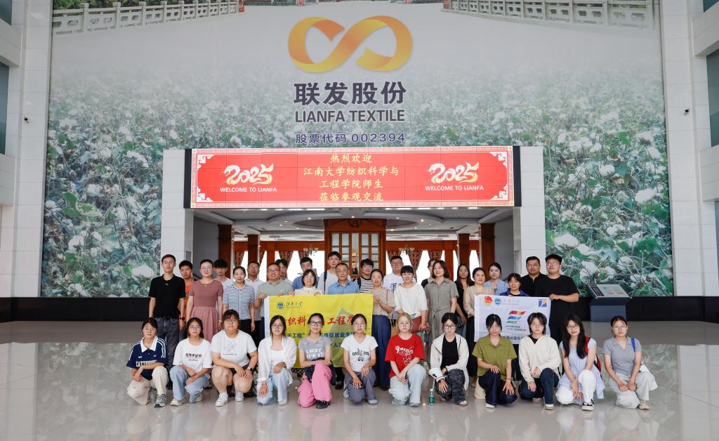 7月17日,williamhill前往江苏联发纺织股份有限公司开展 “名企有约”走访调研暨暑期社会实践活动。公司党委副书记、副经理杨莉勤,副经理张丽平,轻化工程系主任殷允杰、副主任苏静,学工办主任任学敏,辅导员伍胤鸿、张旭、孙洲龙及22名本科生、研究生代表参加活动。