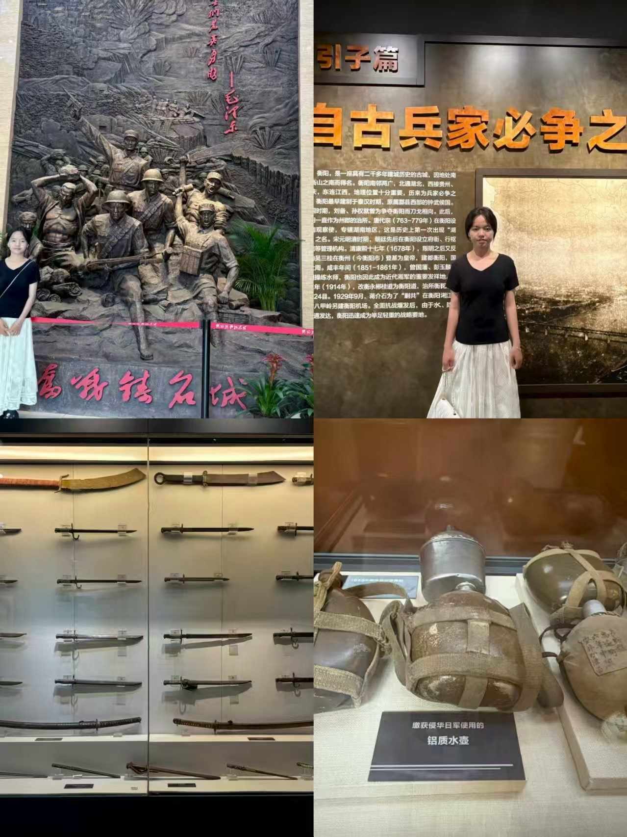 实践团成员王琪、钟佳两位同学分别奔赴湖南省的衡阳抗战纪念博物馆与广东省中山市孙中山故居及纪念馆。衡阳抗战纪念博物馆以大量珍贵历史照片、战士用过的武器及日军水壶等实物,结合场景复原与多媒体演示,生动再现衡阳保卫战的惨烈:日军重兵围城,中国军队以寡敌众、顽强抵抗,军民同心坚守孤城,终因弹尽粮绝撤退,每一片段皆彰显先烈英勇无畏。步入孙中山故居,青砖围墙与院中草木营造出静谧氛围,让人静心感受岁月厚重;两层小楼融合中西建筑元素,无声诉说着主人扎根传统、放眼世界的格局。移步孙中山纪念馆,庄严肃穆的建筑让人肃然起敬,馆内多种形式展示孙中山先生生平与革命历程,让历史鲜活可感。