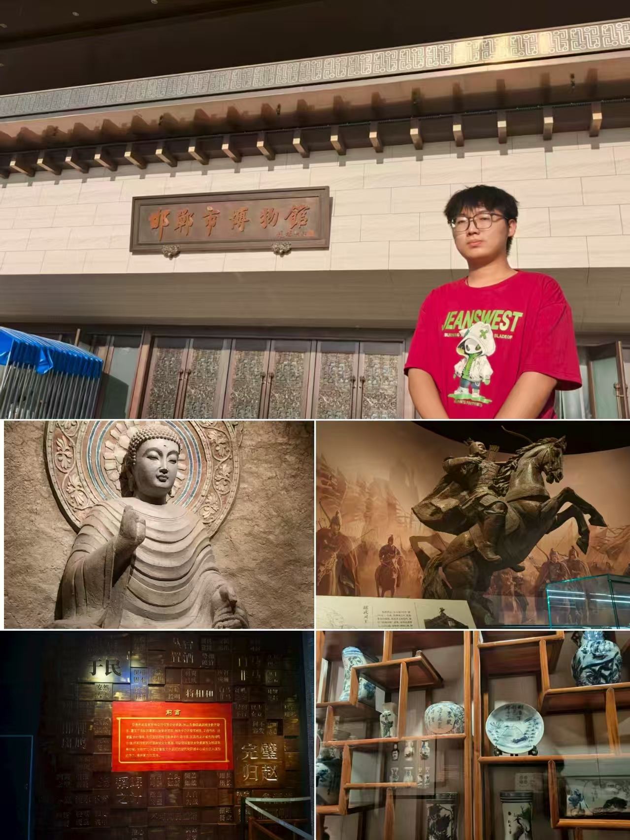 王祎杭同学心怀敬畏赴河北省邯郸市,于邯郸市博物馆探寻成语、瓷器、石刻等绵延文化。参观时,他发现诸多文物故事借AI游戏等现代科技,让游客近触中华优秀文化而后不由发出感叹感慨:“成语故事、陈列的瓷器、矗立的石像无一不让我惊叹,科技赋能是讲好中国故事的良方。”