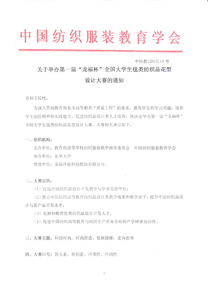关于举办第一届“龙福杯”全国老员工毯类纺织品花型设计大赛的通知